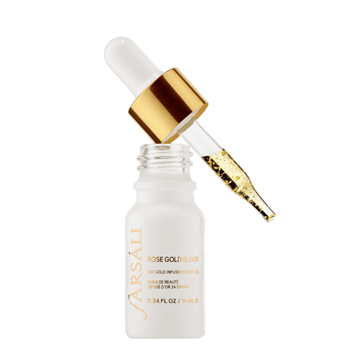 الكسير روز قولد من فرسالي يعتبر زيت معزز برقائق الذهب الفاخرة. يمتاز بتركيبته اللطيفة على البشرة والتي تحتوي على مواد مضادة للأكسدة وعلامات الشيخوخة لتسهل من عملية امتصاصه.