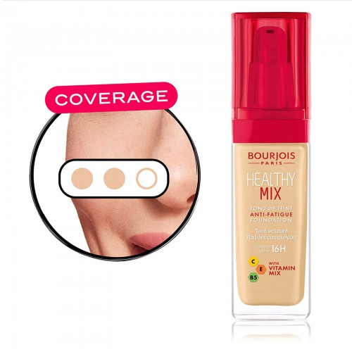 الحصول على بشرة مشرقة وخالية من العيوب باستخدام مؤسسة Bourjois Healthy Mix Foundation ؛ مكياج مكمل للبشرة يعزز البشرة الطبيعية. يمتاز الأساس بملمس ناعم ومنعش ، وينزلق ببساطة على البشرة ، ويمتزج دون عناء للحصول على مظهر طبيعي سلس مع تغطية وافرة.